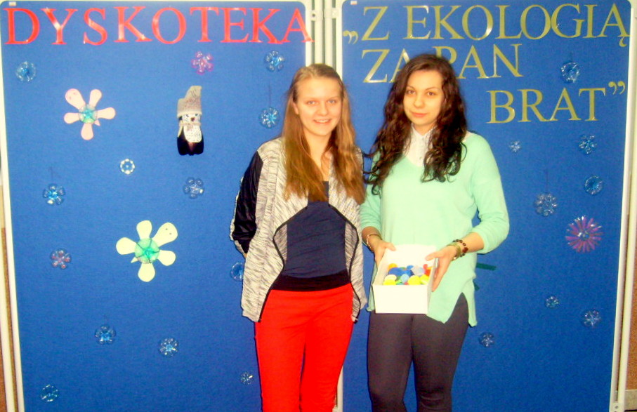 „DYSKOTEKA EKOLOGICZNA” Posted on 13 lutego, 2014 by admin 11.02.2014 r. Młodzieżowa Rada Bursy pod kierunkiem p. S. Skowron zorganizowała dyskotekę ekologiczną: „Z ekologią za pan brat”. Podczas zabawy zbierane były plastikowe nakrętki. Młodzież przygotowała także wystawę ekologiczną z plastiku.